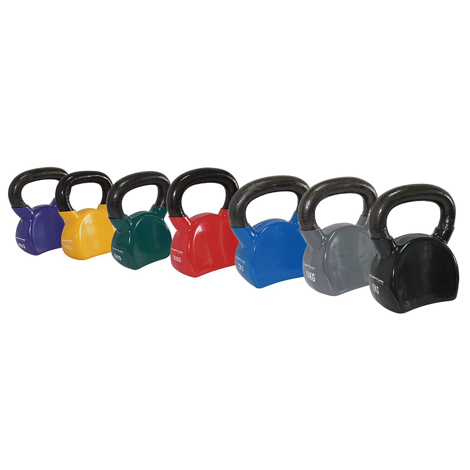 Výhody činky Tunturi Kettlebell - Vinyl - 4 kg. - Fialová