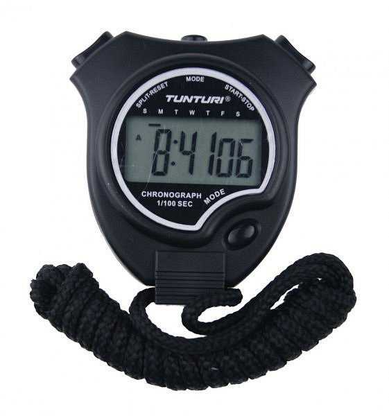 Stopky s velkým displejem. Hlavní základní funkce – čas, den, měsíc, hodiny, minuty, vteřiny (1/100).