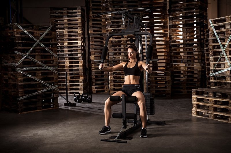 | Tlaky na prsa v sedě, Horní kladka, Spodní kladka, Předkopávání, Zakopávání, Peck-deck, Přítahy na záda | ANO |