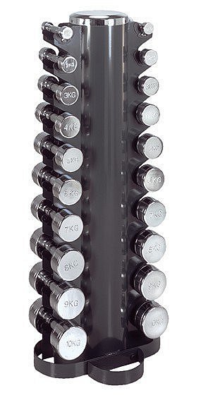 Tunturi stojan na činky, ideální pro ukládání jednoručních činek v domácí nebo komerční posilovně či fitness zařízení. Vyrobeno z kvalitního kovu. Díky stabilní konstrukci s vysoce odolnou povrchovou úpravou je tento činkový stojak oblíbeným příslušenstvím pro všechny typy posiloven. Možnost umístění až 20 ks jednoručních činek. Určeno pro domácí i komerční posilovny. Výška: 130 cm.