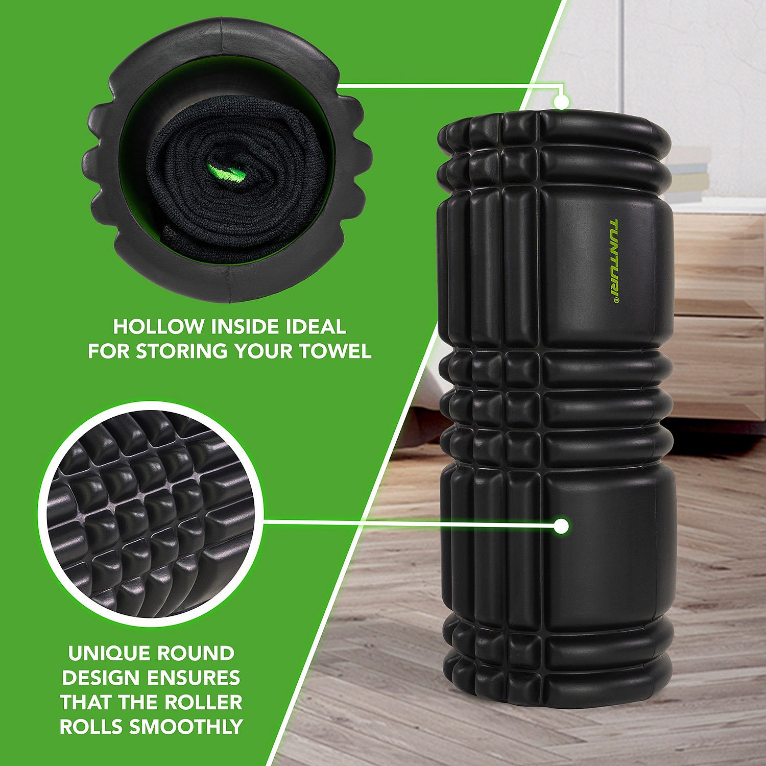 Popis obrázku: Masážní válec Foam Roller TUNTURI 33 cm / 13 cm černozelený