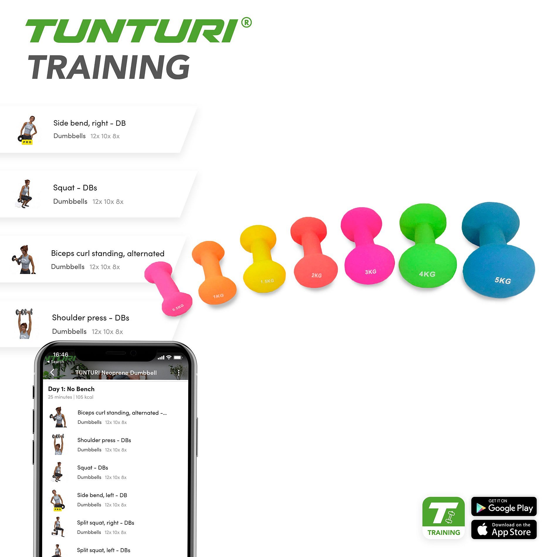 Hledáte pomoc, inspiraci nebo motivaci pro svůj trénink? V aplikaci Tunturi Training najdete tisíce animovaných fitness cvičení, návodů a tréninkových videí. Ty vám pomohou dostat ze sebe a z výrobků Tunturi maximum. Můžete trénovat samostatně a vytvořit si vlastní tréninkový plán, stejně jako navštěvovat skupinové lekce a využívat komunitu. Knihovna je pravidelně aktualizována, takže v aplikaci najdete vždy nové výzvy a inspiraci. A to je na tom to nejkrásnější: Tunturi Training je 100% zdarma! a můžete si ho stáhnout z App Store a Play Store!