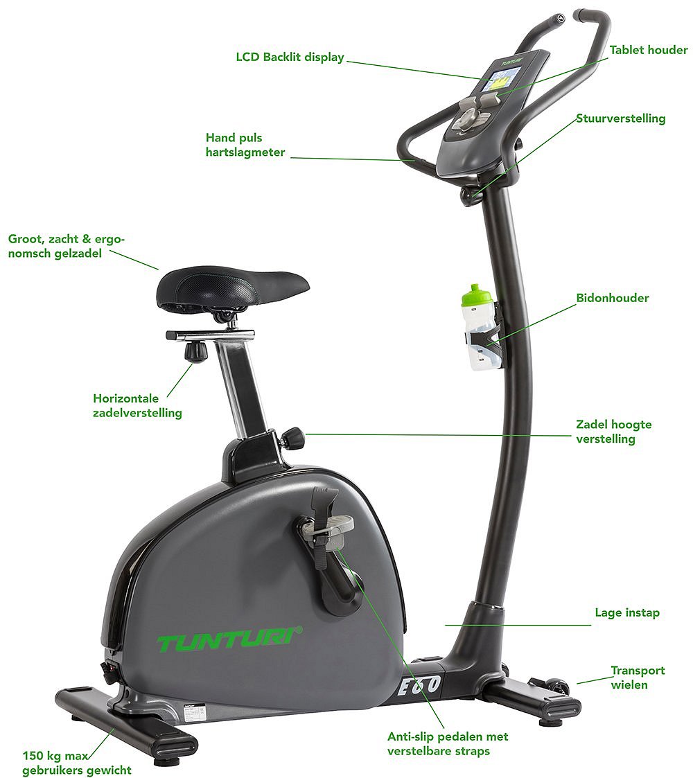 Rotoped je vybaven pohodlným sedlem, které je nastavitelné jak vertikálně, tak i horizontálně. Sedlo si lehce upravíte přímo na tělo a navíc si můžete přizpůsobit i sklon řídítek, což zajistí pohodlný trénink osobám různé výšky. Plastové pedály vybavené fixačními řemínky (klipsnami) drží bezpečně chodidlo na šlapačce. Pedály i trn sedla této vyšší řady Performance jsou vyměnitelné za jakékoliv cyklistické. Předností modelu TUNTURI E60 Bike Performance je nízký práh při nastupování a sestupování pro osoby se zdravotním hendikepem.