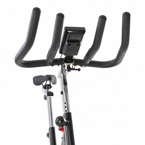 Počítač s 5,5" LCD displejem zobrazuje kompletní hodnoty tréninku jako jsou: čas jízdy, RPM otáčky, rychlost jízdy, ujetá vzdálenost, spálené kalorie, zátěž a tepovou frekvenci. Computer má integrovaný přijímač na snímání tepové frekvence přes hrudní pás s frekvenci 5 kH s přesností EKG a komfortním měřením tepu. Hrudní pás není součástí dodávky, ale můžete si jej u nás samostatně dokoupit.