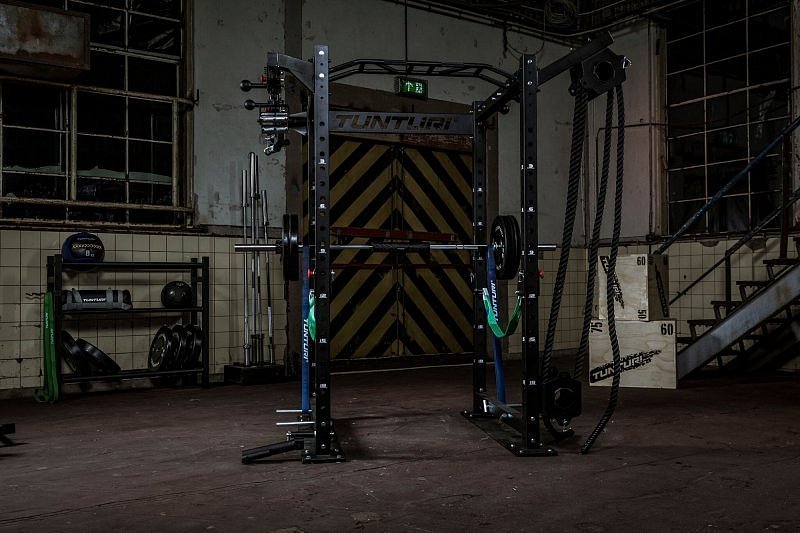 Popis obrázku: Hrazda s flexibilními úchopy pro klec TUNTURI RC20