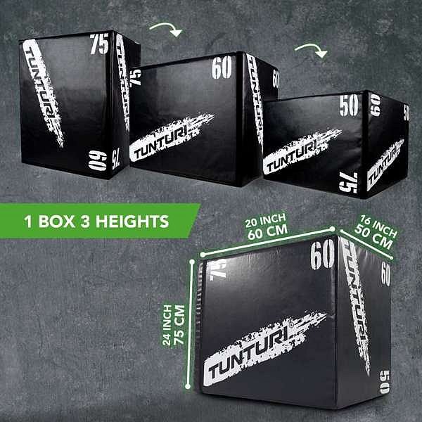 Tréninkem s plyo boxem můžete zábavným a náročným způsobem pracovat na své kondici, síle a výbušnosti. Existuje mnoho různých možných cvičení, jako jsou skoky z dřepu, přeskoky na sílu, boční skoky nebo zvýšené kliky. Tento box Tunturi Plyo je vyroben ze dřeva a má měkkou vnější vrstvu. To je praktické, protože to pomůže zabránit modřinám nebo škrábancům, pokud náhodou narazíte na okraje nebo rohy krabice. Každá strana má jinou délku a box lze nastavit na tři různé výšky.