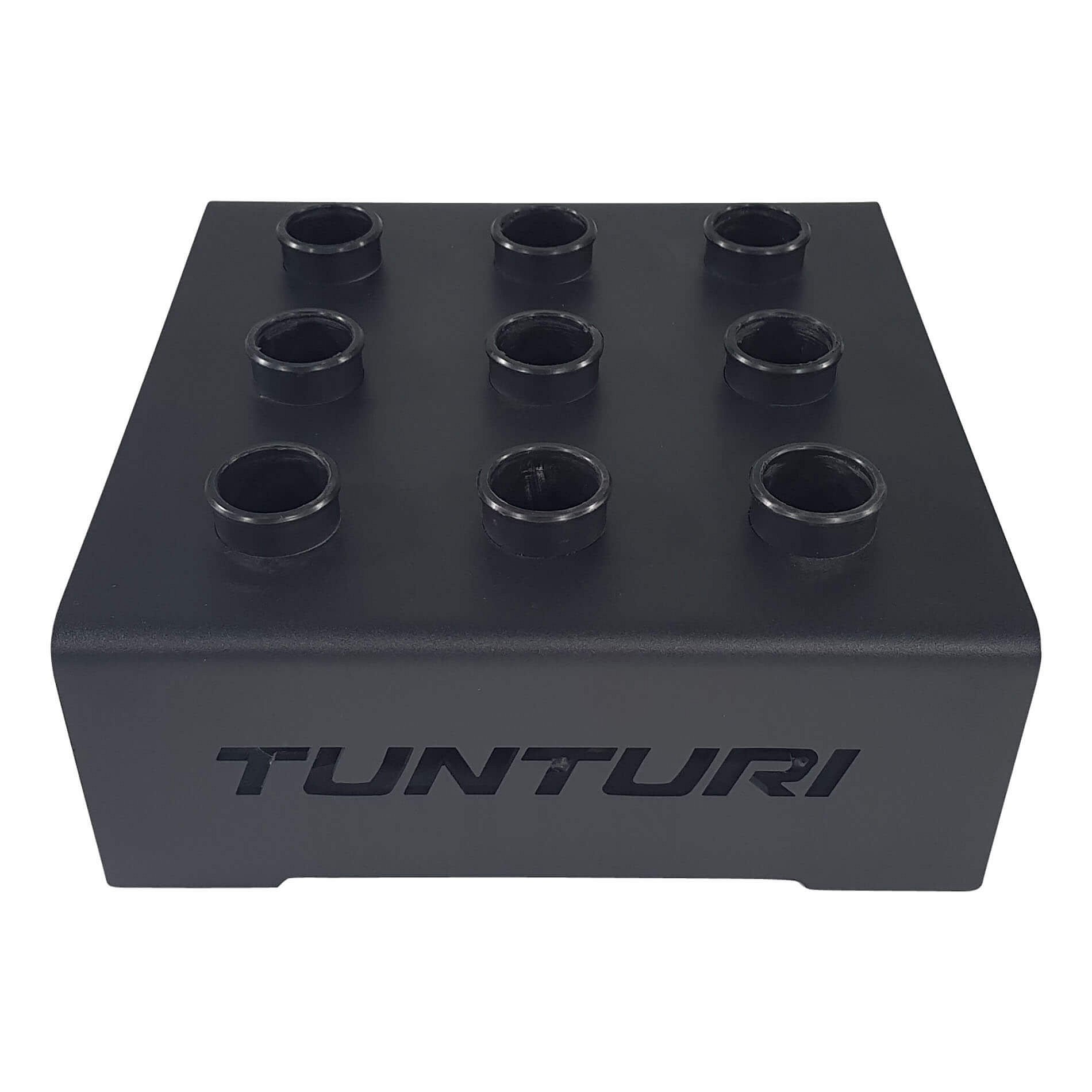Posilovací tyče jsou kulaté, a proto se mohou velmi snadno kutálet po podlaze. Chcete mít svůj tréninkový prostor bezpečný a přehledný? Do tohoto držáku na olympijské tyče Tunturi můžete snadno uložit posilovací tyče. Držák je určen pro 9 olympijských tyčí o průměru 50 mm. Je vyroben z robustního kovu a opatřen černou práškovou barvou. Držák zabírá velmi málo místa, protože tyče se závažím lze uložit ve svislé poloze.