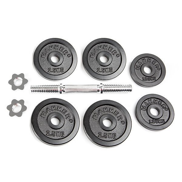 Popis obrázku: Nakládací jednoruční činka HAMMER Dumbbell Set Iron 15 kg / 30 mm