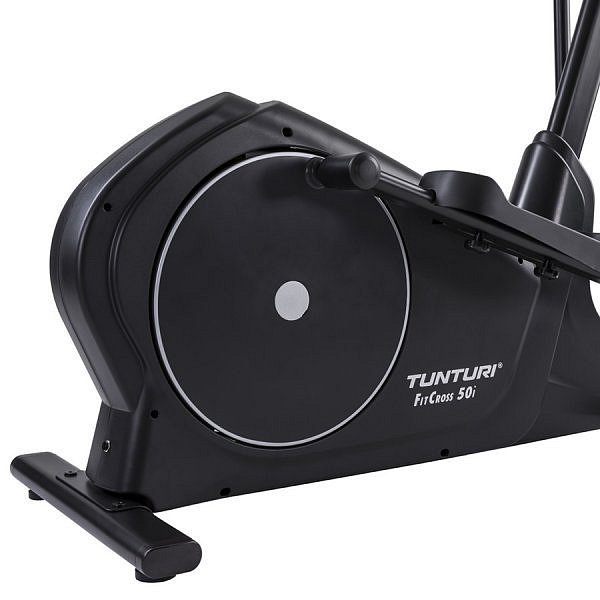 TUNTURI FitCross 50i patří mezi tzv. eliptické trenažéry se setrvačníkem v zadní části stroje. Kombinuje kvalitní mechaniku a ergonomii rámu s nosností do 150 kg. Právě díky důmyslné ergonomii trenažéru a dobré mechanice je zaručen pohodlný a správný pohyb při tréninku. Masivní konstrukce spolu s kvalitními komponenty prodlužuje životnost stroje i při využití těžšími osobami a je bezproblémový i při pravidelném domácím tréninku. Setrvačníková hmota s kalibrovaným setrvačníkem o hmotnosti 14 kg, plochý řemen s dopínací kladkou a moderní magnetická brzda zaručuje u TUNTURI FitCross 50i komfortní, plynulý a zcela tichý chod i při větších zátěžích při tréninku.