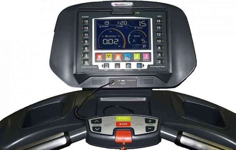 Běžecký trenažér HOUSEFIT SPIRO PRO má velmi jednoduché a intuitivní ovládání pomocí konzole, která má modře podsvícený LCD displej. Na displeji lze měnit rychlost a sklon po jednotkách, ale i pomocí tzv. " horkých kláves ". Při jejich použití se stroj rozjede na předem nastavenou rychlost, resp. nastaví určený sklon stroje. Displej zobrazuje čas, sklon, rychlost, spálené kalorie, tepovou frekvenci. K dispozici je 12 přednastavených programů, 3 uživatelské a 2 HRC programy. HRC program je řízený podle vaší tepové frekvence. Dále nabízí režimy fat, countdown ( odpočet času / vzdálenosti ) a manuální režim.