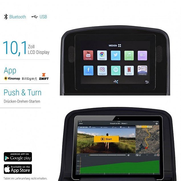 | Přednastavené profily trati, Program řízený tepem HRC, Uživatelské programy, Nastavení rychlosti příp. sklonu ručně tlačítky | ANO |