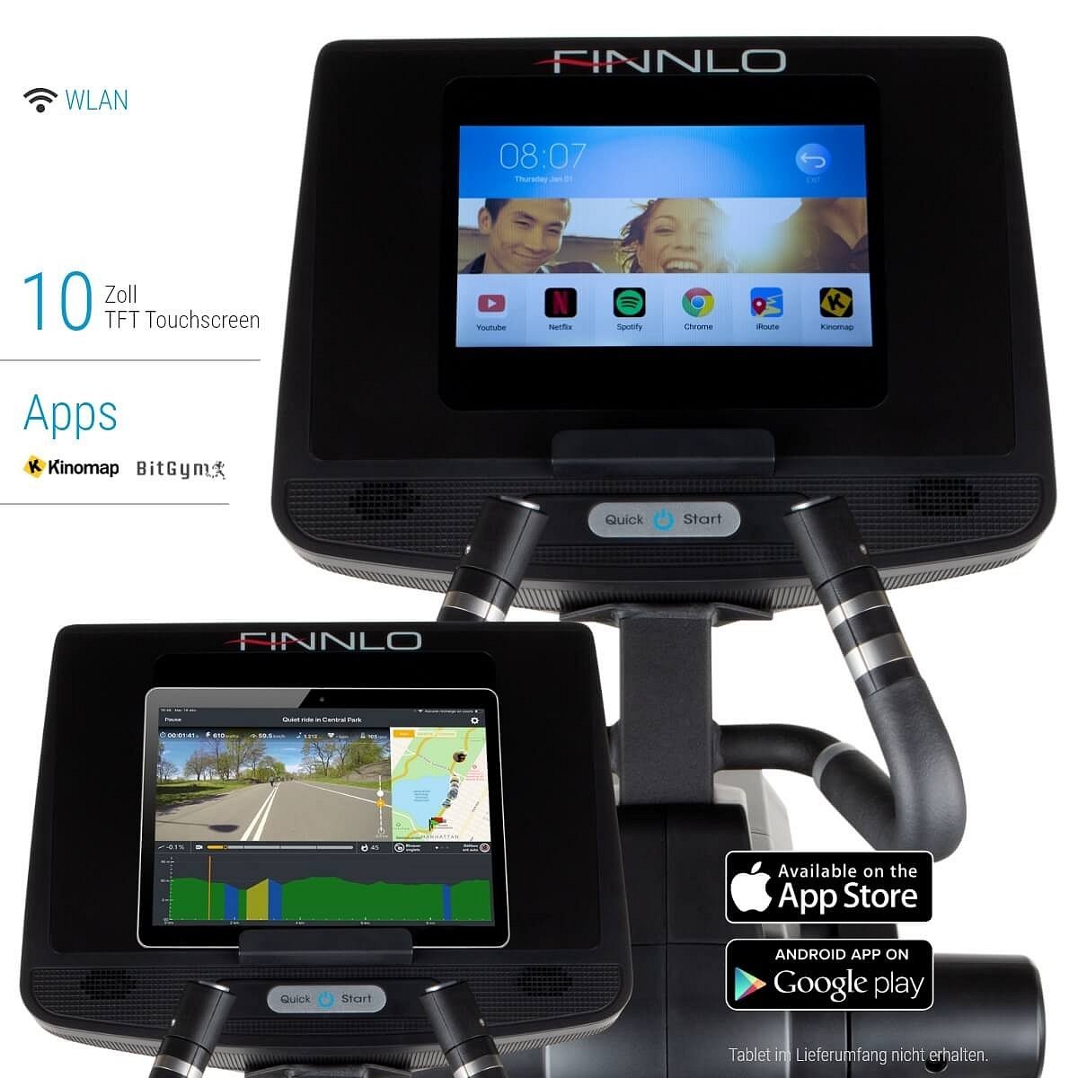 YouTube, Spotify, Instagram atd., to je multimediální zábava dle vašich potřeb. Fitness aplikace Kinomap nabídne projetí si tras po celém světě, a to velmi realisticky. To všechno přímo v PC trenažéru. S USB konektorem bude ale i vaše elektronika vždy k dispozici. Tablet není součástí nabídky.