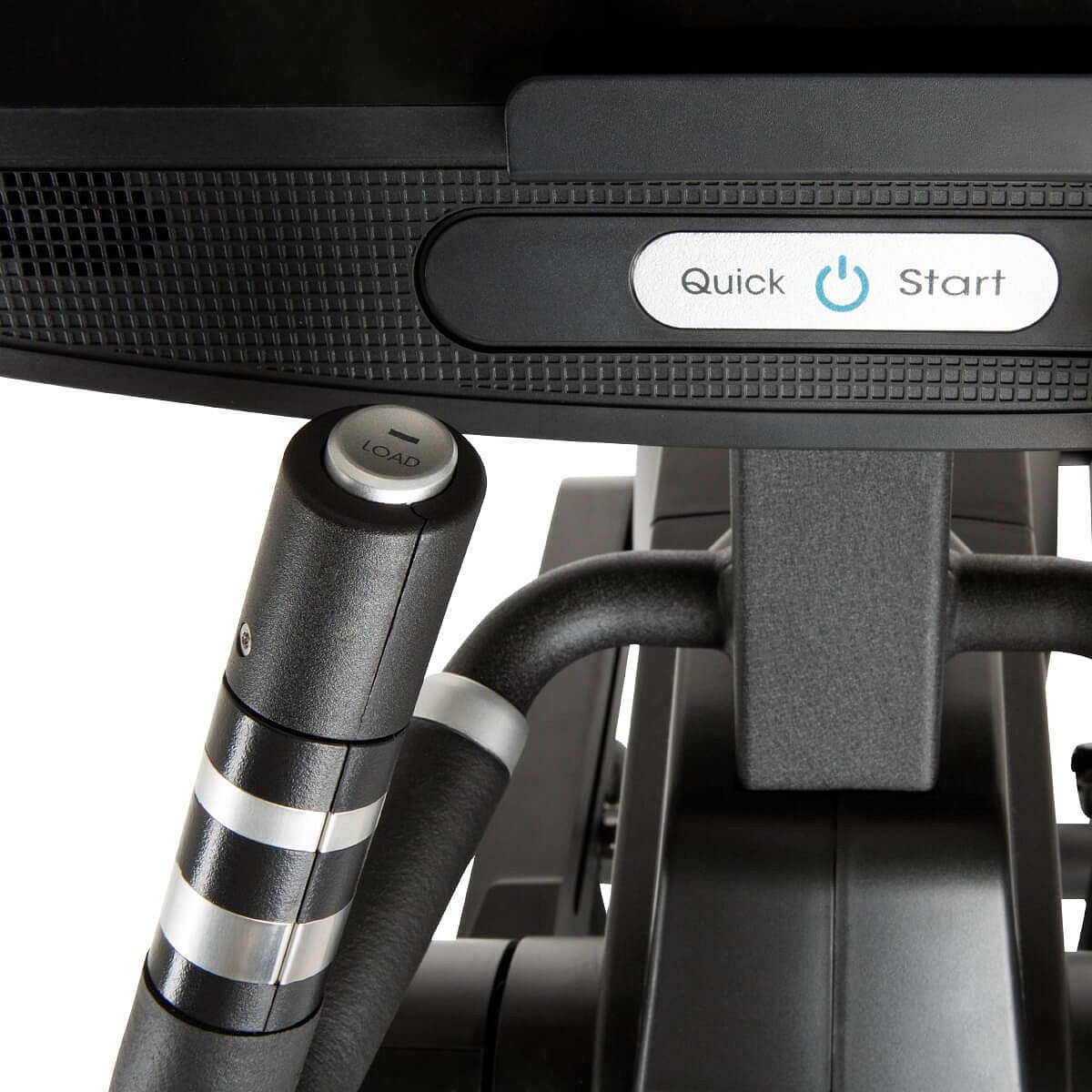 Stroj má TFT grafický dotykový 10" displej, který ukazuje všechny důležité hodnoty vašeho tréninku. Kontrolovat tak můžete: rychlost, frekvenci kroků, čas tréninku, vzdálenost, frekvenci tepu, ten je měřen pomocí dlaňových snímačů umístěných na madlech. Přesnějšího měření ale dosáhnete s hrudním pásem o frekvenci 5 kHz, který také zakoupíte u nás. Integrovaný počítač nabízí výběr z 21 programů, z toho 4 HRC programy (stroj nastavuje zátěž dle vaší momentální tepové frekvence), režim recovery, který po skončení tréninku vyhodnotí vaši aktuální kondici, manual, watt, apod. Zátěž si tak můžete volit pomocí vybraného programu nebo manuálně tlačítky k tomu určenými.