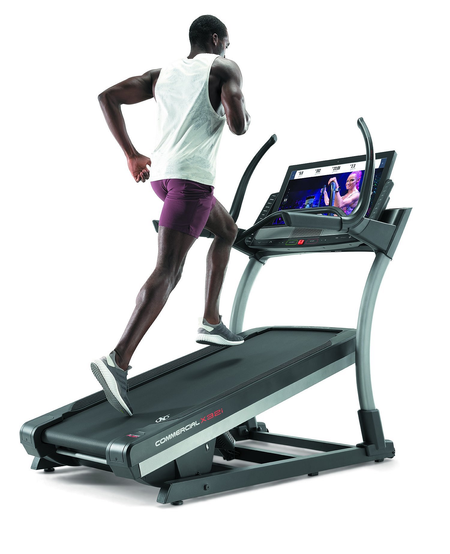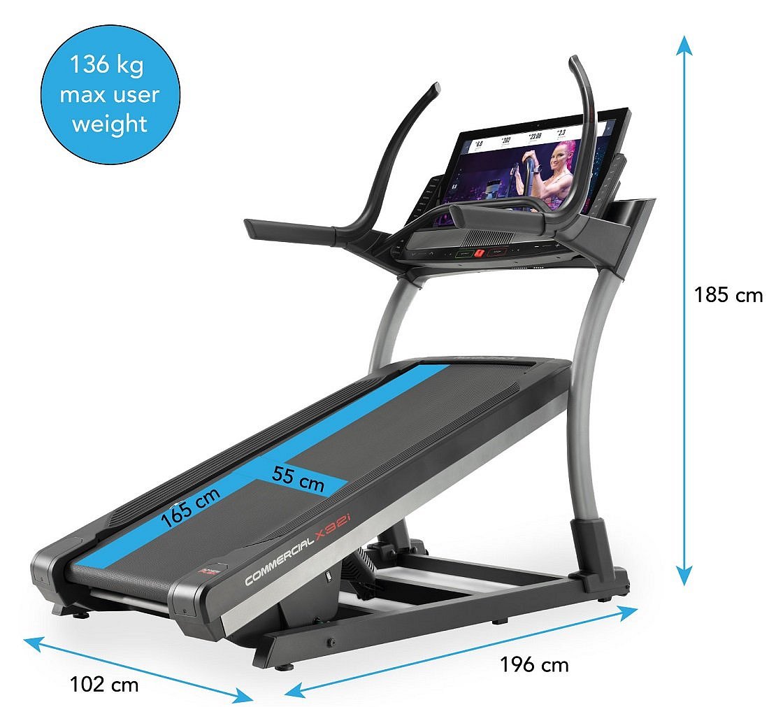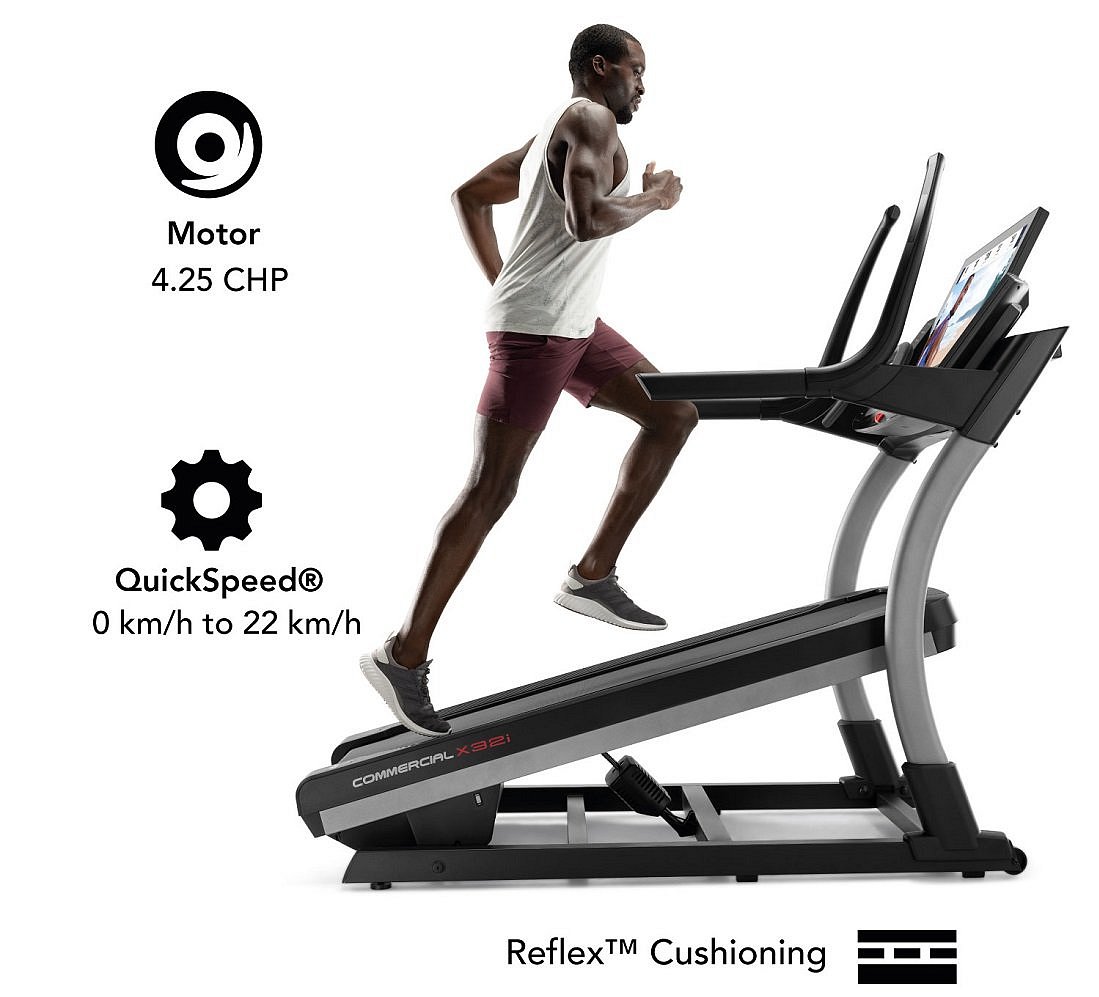 NORDICTRACK Incline Trainer X32i 2021 je běžecký trenažér nejen pro domácí fitness, ale i pro lehce komerční provozy. Bude vhodný pro pravidelný trénink začínajících sportovců, pokročilejších běžců, ale i pro vášnivé sportovce. Stroj poskytuje kombinaci kvalitní mechaniky a masivního rámu s nosností až do 136 kg váhy cvičence. Motor s trvalým výkonem 4,25 HP (3,17 kW), běžecká plocha o velikosti 55 x 165 cm, elektronicky nastavitelná rychlost do max 22 km/h stejně jako elektornicky regulovaný sklon v rozmezí od -6 % + 40 %, nabídne každému maximální komfort při běhání. Rychlost i sklon plochy můžete nastavit krokově nebo už přednastavenými tlačítky na panelu PC.