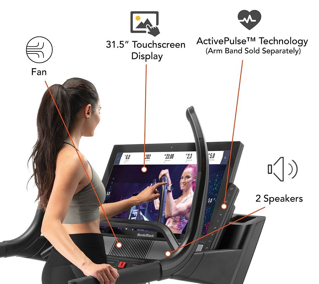 Model běžeckého pásu NORDICTRACK Incline Trainer X32i 2021 disponuje ventilátorem, který zpříjemní trénink, reproduktory pro poslech hudby nebo mluveného slova a držáky na lahev s pitím. Ke snadnému přemísťování pomůžou transportní kolečka, která jsou součástí stroje.