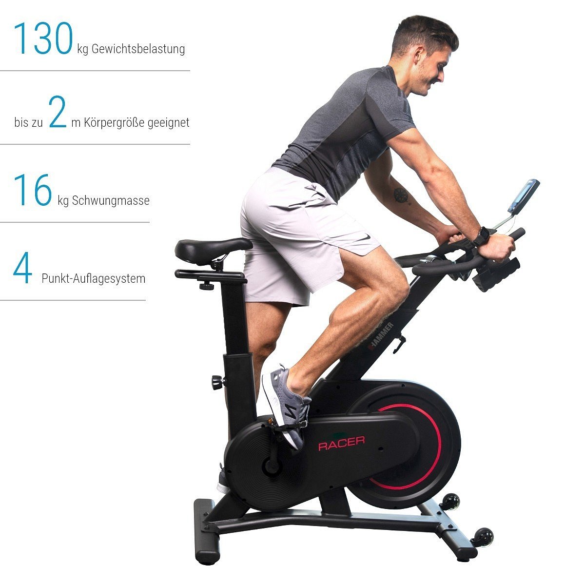 Šlápněte do pedálů s maximálním výkonem a ovládejte svou rychlost pomocí moderní magnetické brzdy. Speedbike RACER posílí Vaše lýtkové a stehenní svaly a spálí spoustu kalorií. Váš kardiovaskulární systém je posílen s každým tréninkem. Indoor cyklistika také zapojuje břišní svaly. Zvláště pokud jedete v rychlejším tempu, a když stojíte. Kromě toho se můžete motivovat hudbou a opravdu jít do sebe. Nechte speedbike RACER, aby Vám ukázal nejlepší způsob tréninku a připravil Vás se na další cyklistickou sezónu doma bez ohledu na počasí.