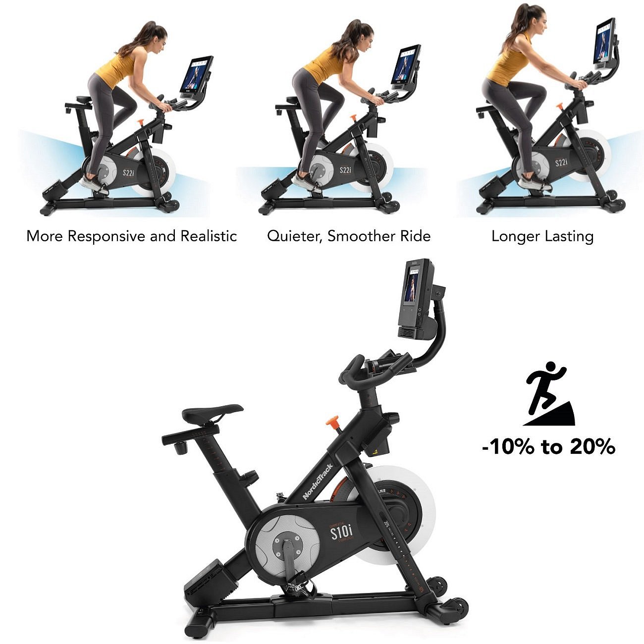 NordicTrack Studio 10i cyklistický trenažér je špičkový, moderní stroj pro reálný cyklozážitek z pohodlí vašeho domova. Tento jedinečný trenažér, díky jeho parametrům, lze využít i v menších komerčních prostorách jako jsou klubová fitness, hotely, welness. Dokonalá ergonomie, řemenový pohon, polohovatelné sedlo i řidítka, elektronicky nastavitelný přední i zadní sklon a elektronické odvládaní odporu ve 22 úrovních vám poskytnou věrný pocit jízdy na silničním kole. Cyklotrenažér disponuje kalibrovaným setrvačníkem o hmotnosti 13 kg, ten zaručuje stroji plynulý a tichý chod.