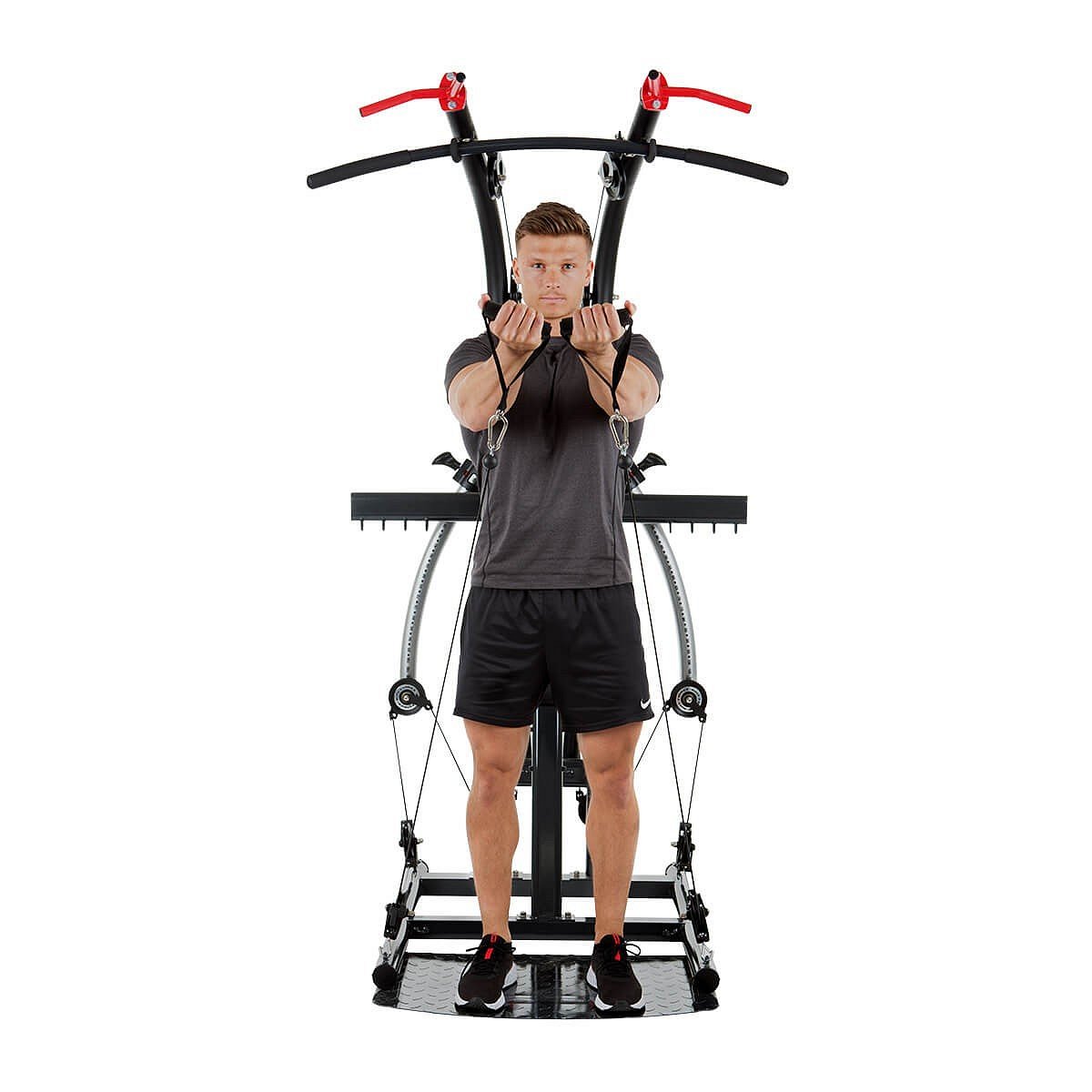 Posilovací věž do domácího prostředí. Nosnost uživatele 135 kg. Více než 100 různých cviků pro celé tělo. Rozměr věže po sestavení 134 x 168 x 218 cm.