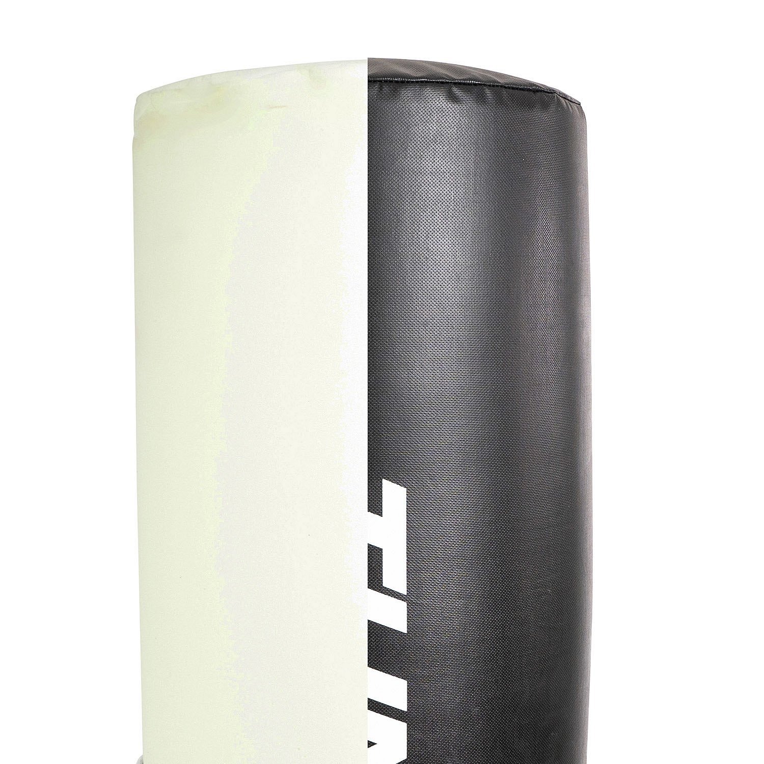 Noha tohoto boxovacího pytle pojme přibližně devadesát kilogramů písku. Díky této hmotnosti je boxovací pytel pevný a stabilní, ať už udeříte nebo kopnete jakkoli silně. Samotný pytel je vyroben z PVC. Tento materiál má velkou absorpční schopnost, což znamená, že údery a kopy méně zatěžují vaše klouby. Kromě toho PVC snadno pruží, takže boxovací pytel na stání si udržuje svůj tvar.