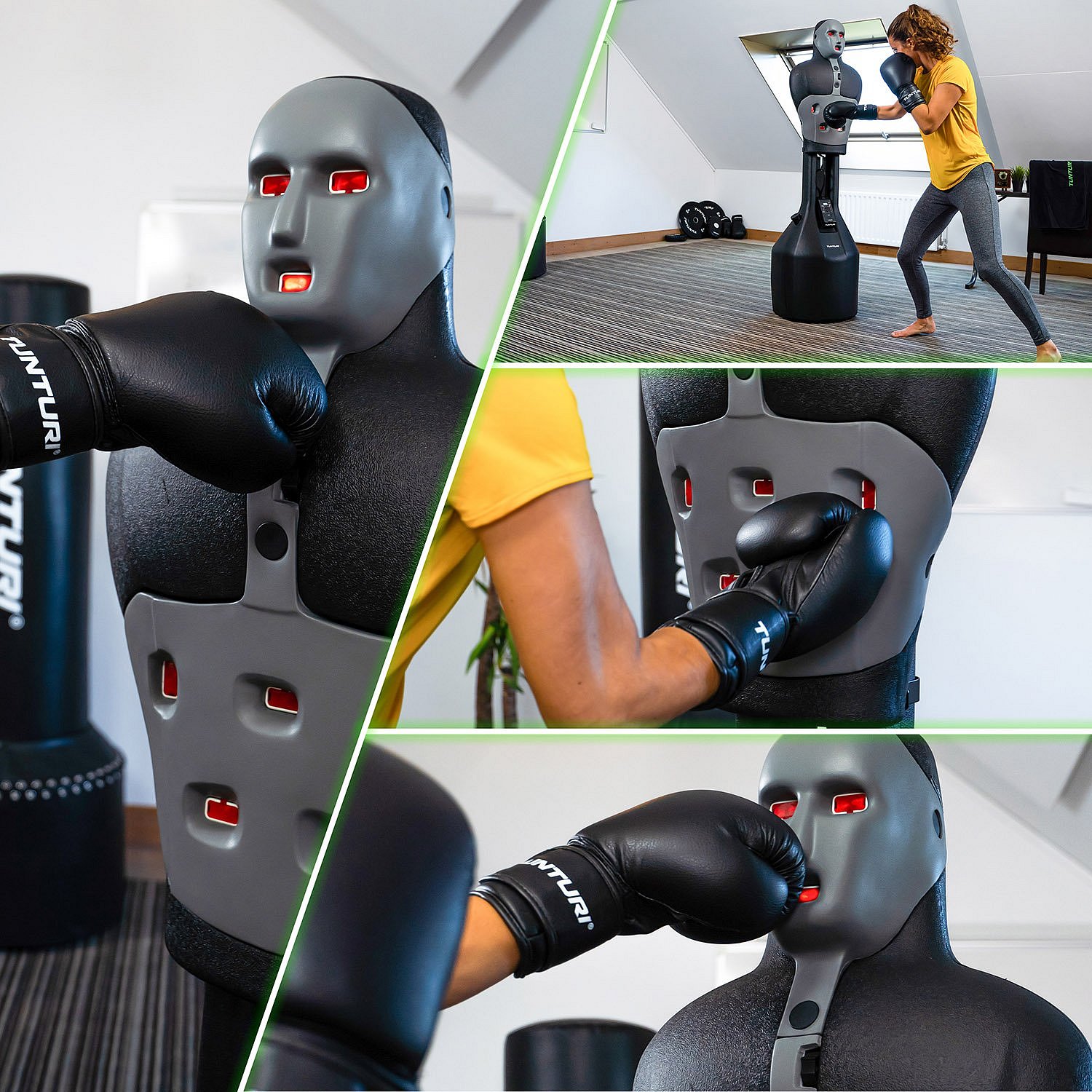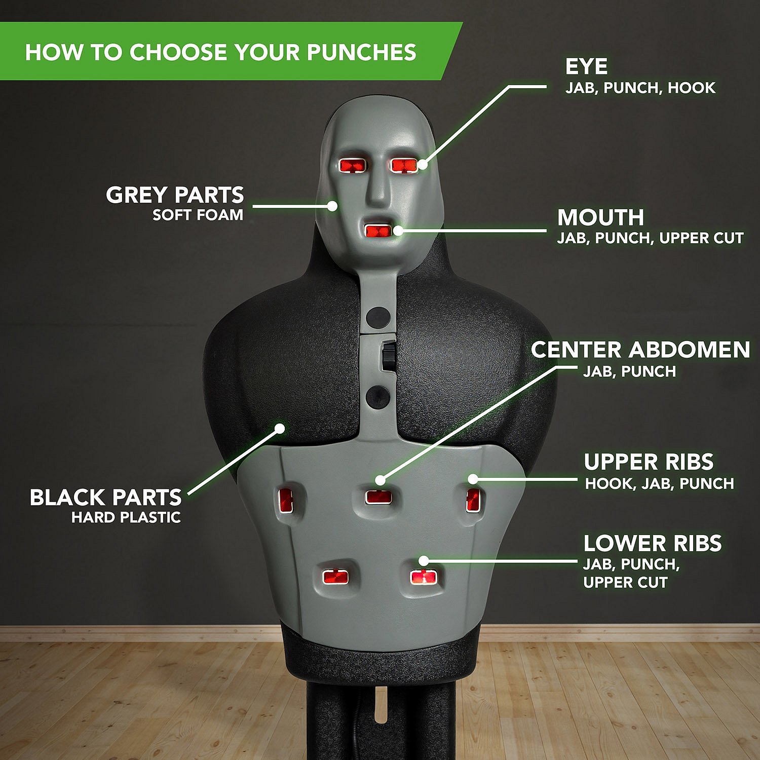 Chcete zapracovat na své technice úderů a kopů realistickým způsobem? Pak si jděte zacvičit na Slam Man! Tato počítačem řízená figurína vám umožní trénovat na náročné úrovni rychlým sledováním předem naprogramovaných světel.