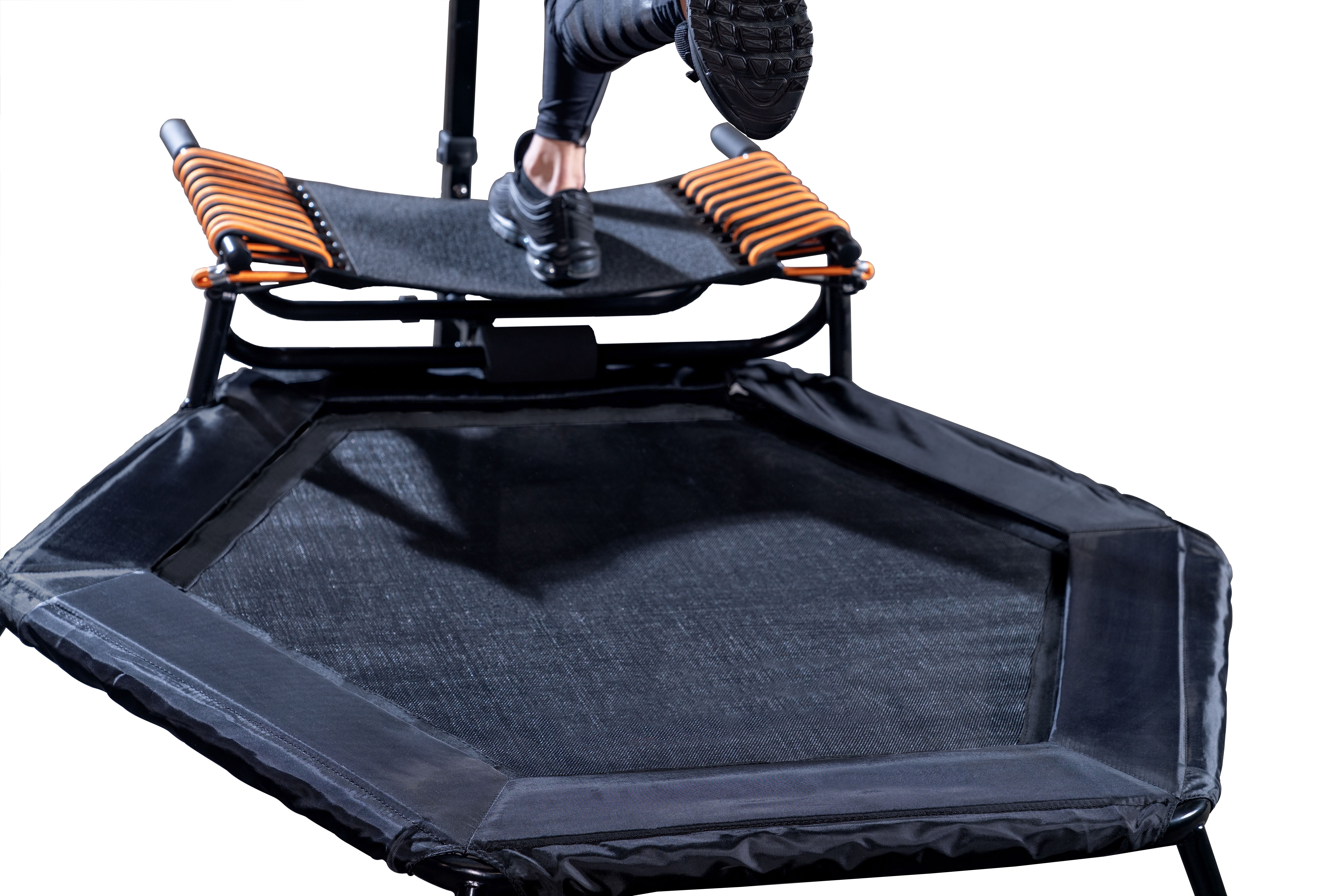 Pokud budete mít někdy chuť, můžete svůj JumpStep několika jednoduchými kroky přeměnit na normální trampolínu a trénovat bez nášlapné desky. Nášlapnou desku lze velmi snadno demontovat a rukojeť lze nastavit do druhé polohy, takže s JumpStepem můžete provádět i normální trénink skákání, jako u běžných trampolín.