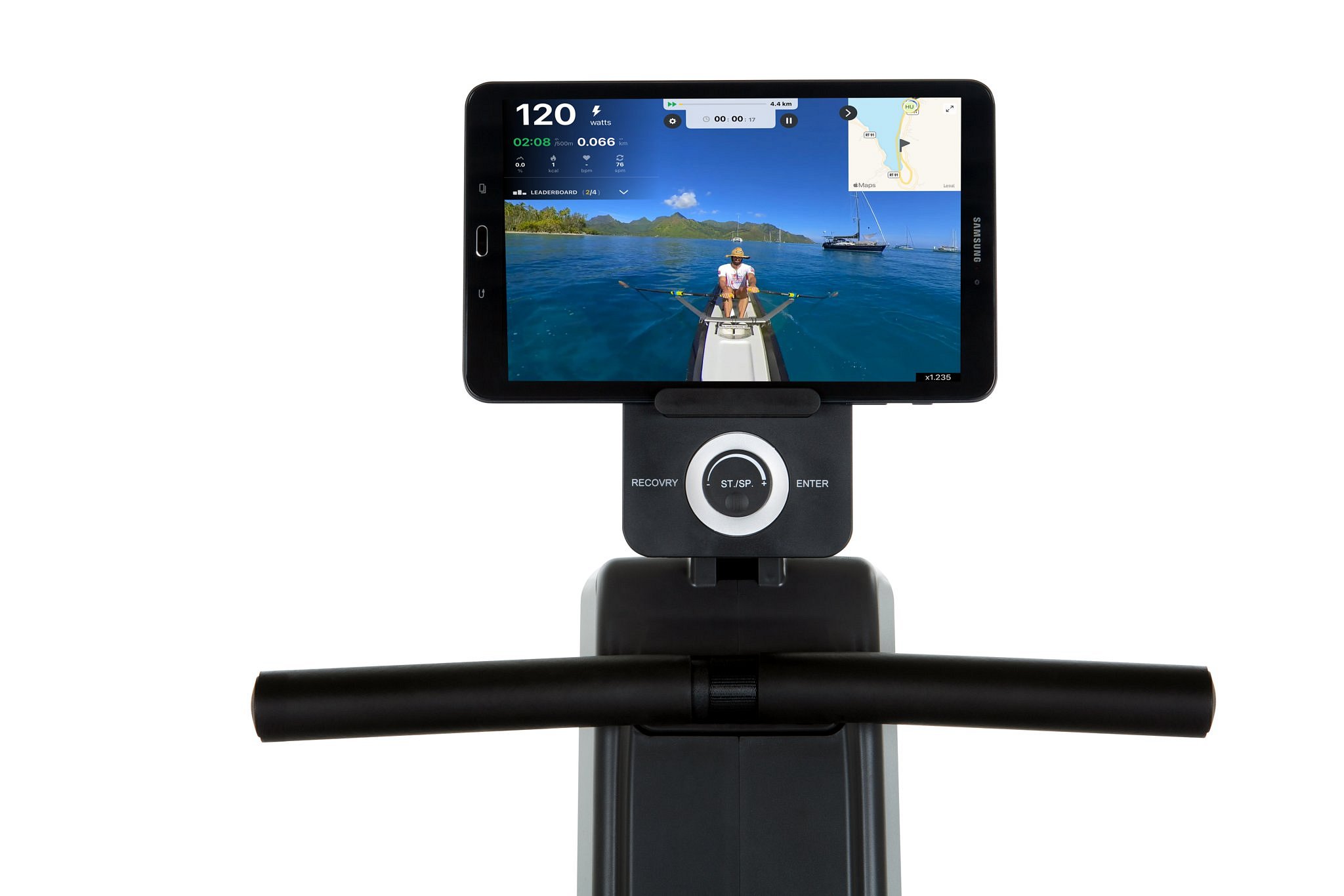 Exkluzivní držák na tablet otevírá nové dimenze moderního veslařského tréninku. Umístěte tablet do držáku a ponořte se do cizích vodních světů nebo se zúčastněte náročných veslařských závodů. Inovativní fitness aplikace Kinomap (s funkcí fotoaparátu) vám umožní rychle zapomenout na nudné stěny obývacího pokoje. Fascinováni virtuálními veslařskými výlety vám trénink půjde od ruky. Nechte se tedy unést a dosáhněte nových výšin!