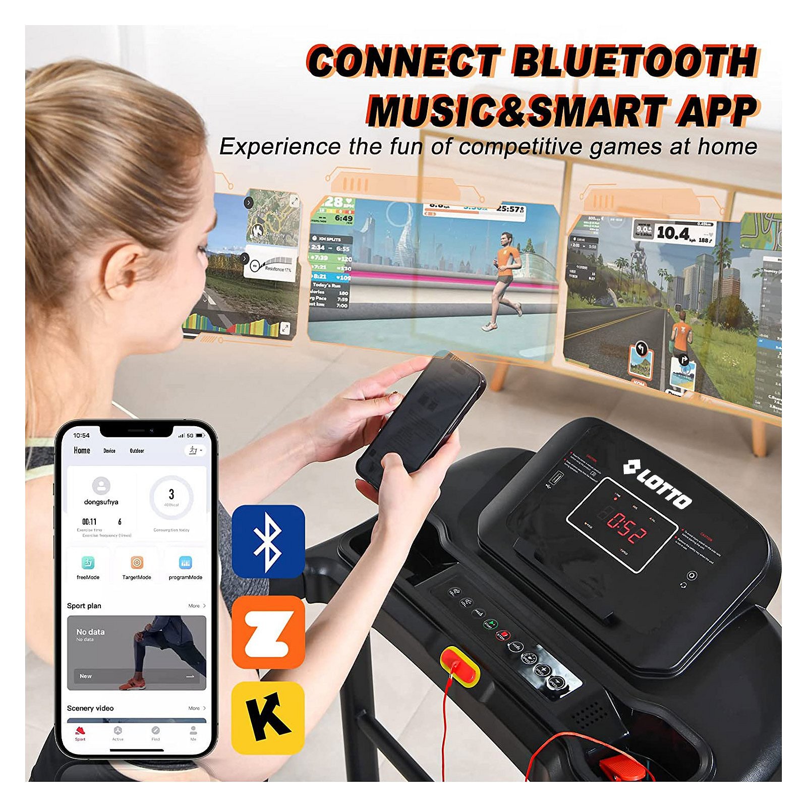 Mezi pokročilé funkce patří LED počítač s červeným displejem, který poskytuje základní informace, jako je rychlost, čas, vzdálenost, kalorie a tep. Připojení Bluetooth umožňuje uživatelům spárovat běžecký pás se svým chytrým telefonem nebo tabletem a ovládat cvičení prostřednictvím aplikací FitShow a Kinomap. Zažijte virtuální tréninky s ostatními nadšenci prostřednictvím aplikace Zwift.