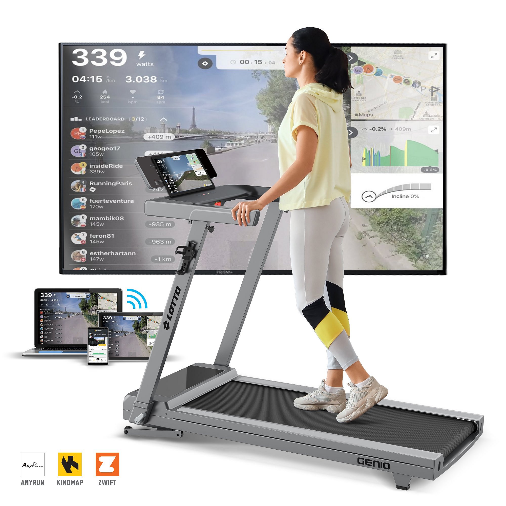 Velkou výhodou pásu Lotto Genio je jeho 95% předmontování, jednoduše vytáhnete z krabice a ihned trénujete.Inteligentní design nabízí v bočních rukojetích tlačítka START a STOP, držák na tablet a držák na Vaši láhev.