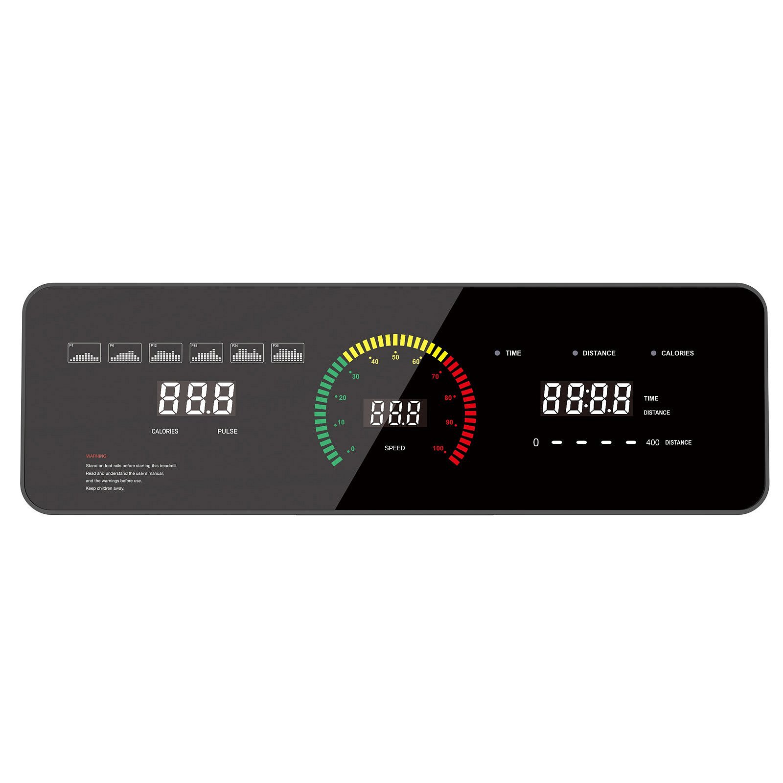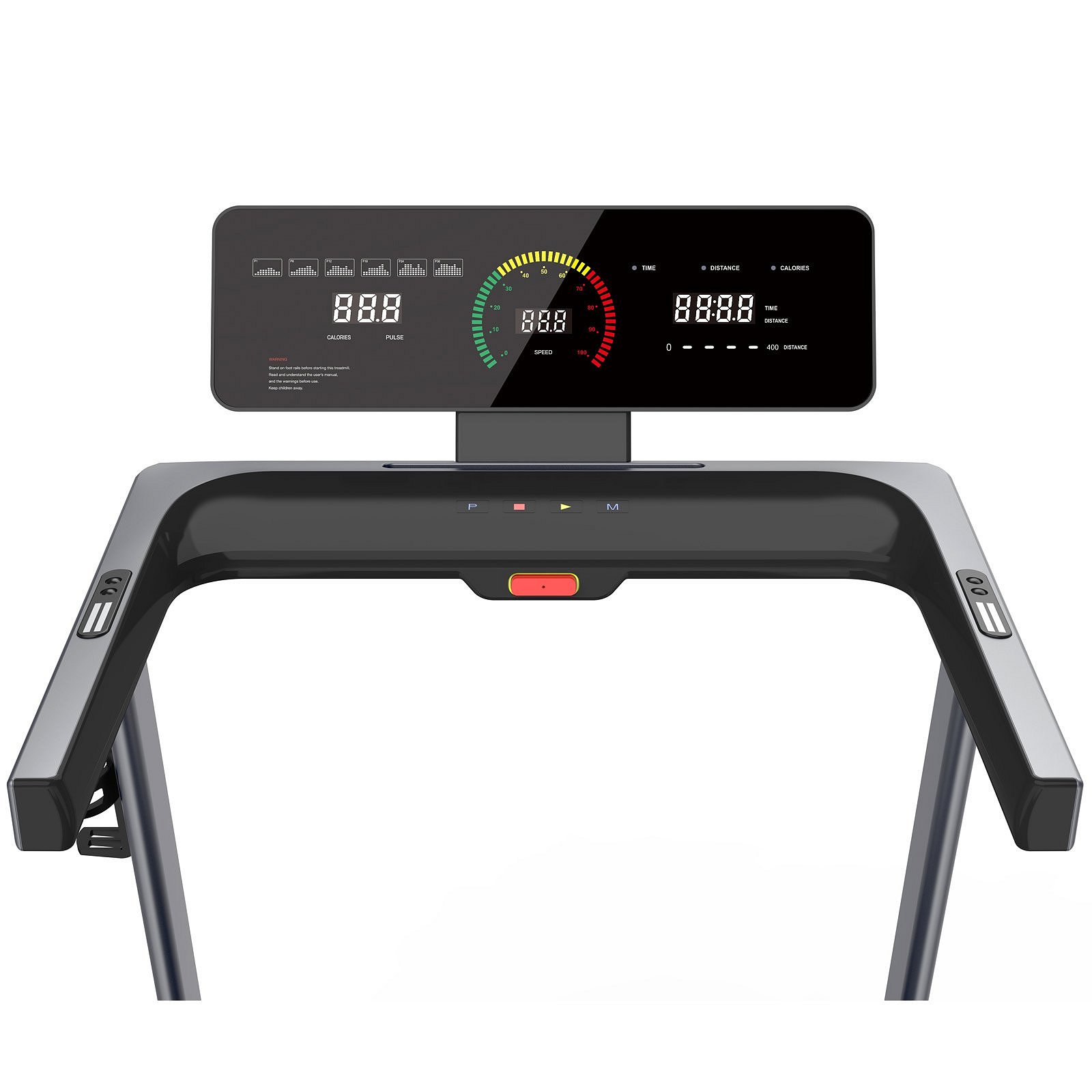 Barevný LED displej poskytuje podrobné informace o rychlosti, čase, vzdálenosti, kaloriích, tepové frekvenci a stoupání, stejně jako rychlý přístup k 36 přednastavitelným programům,3 vlastním programům a 1 manuálnímu programu