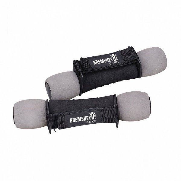 Bremshey Dumbbells 0,5 kg - pár činek v pěnovém návleku s popruhy na suchý zip. Vhodné pro aerobic, kondiční běh apod., Barva šedá/černá.