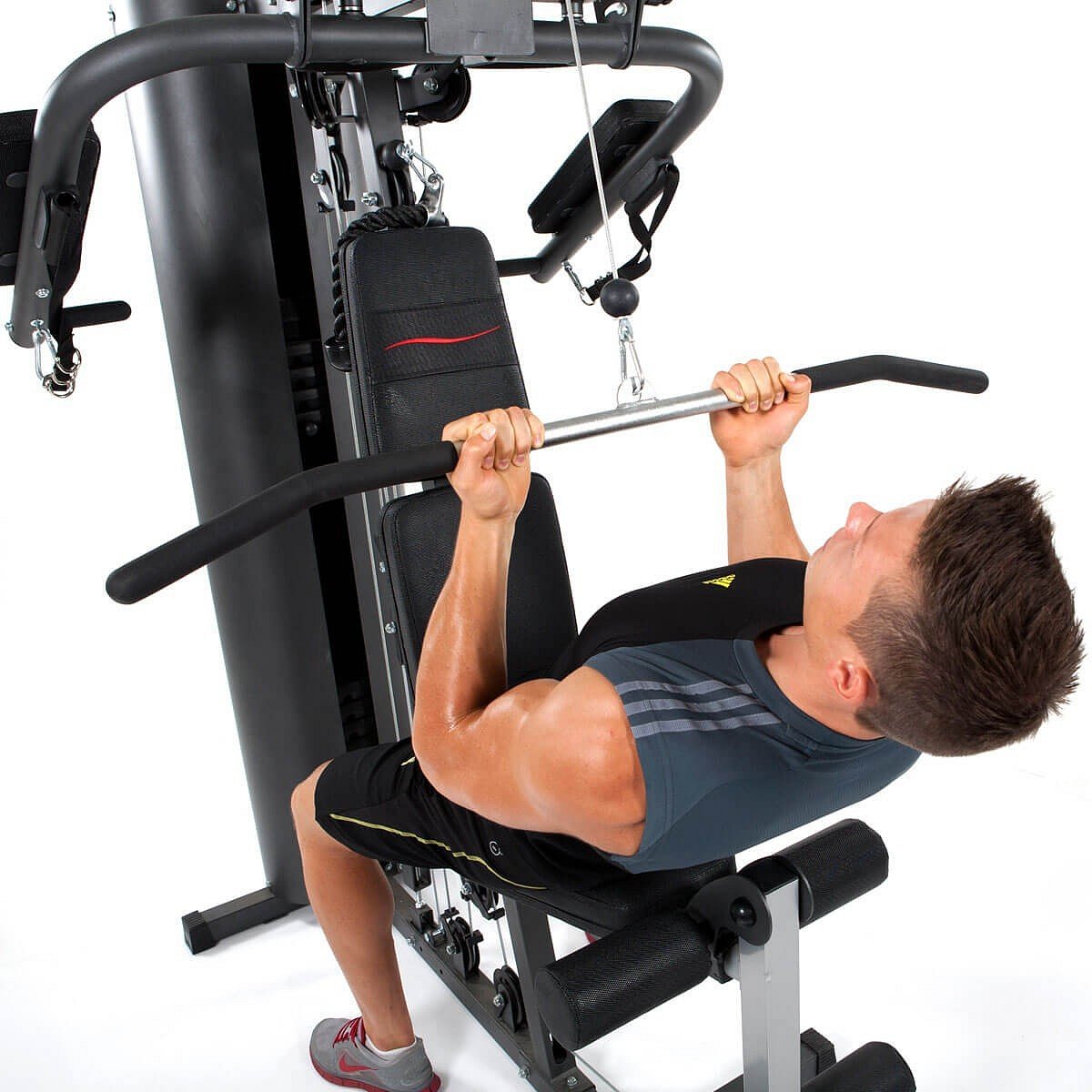 | Tlaky na prsa v sedě, Horní kladka, Spodní kladka, Předkopávání, Zakopávání, Cvičení s jednoručkami, Kladka na břicho, Peck-deck, Přítahy na záda | ANO |