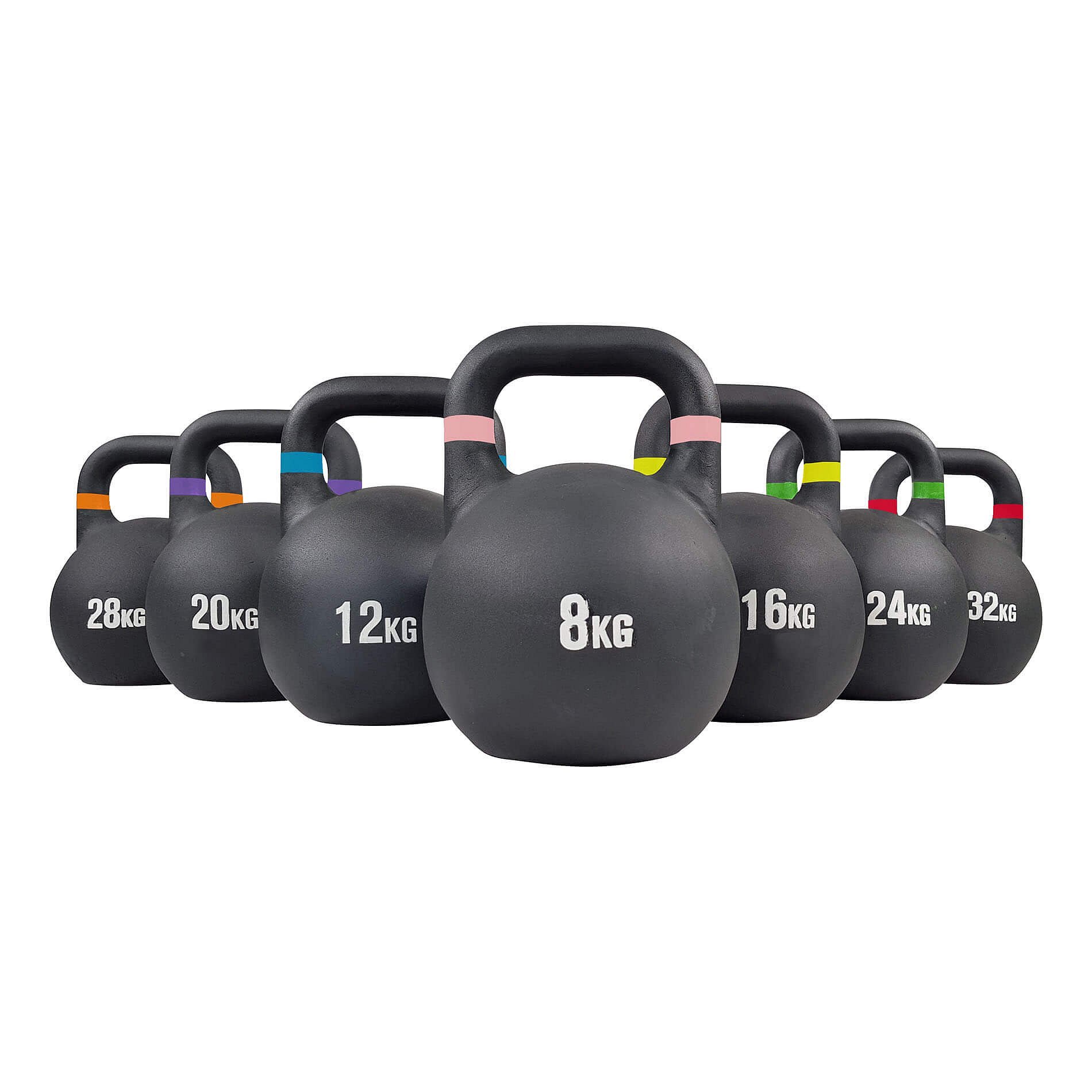 - Všechny kettlebelly v rozmezí 8 až 32 kg mají stejné rozměry